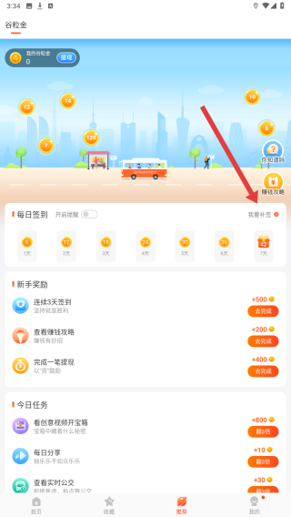 1、點擊界面底部推薦圖標按鈕,進入含每日簽到、新手獎勵等任務的福利頁面,查看可參與活動。