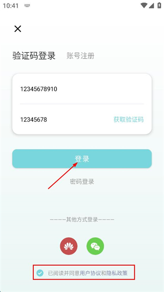 4、勾選已閱讀并同意用戶協(xié)議和隱私政策的選項,點擊藍色的登錄按鈕,完成賬號登錄操作。