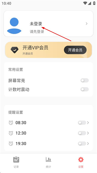 2、在設置頁面看到未登錄標識,點擊該標識進入軟件的驗證碼登錄界面。