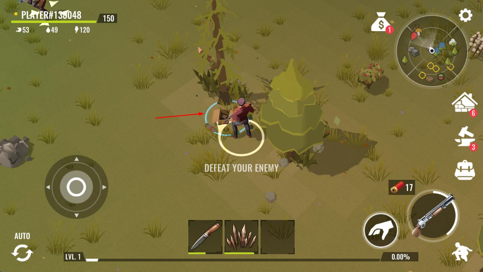 3、回到野外場景,操控角色靠近樹木物資點,點擊收集按鍵收集物資為后續(xù)的危險做好防備。