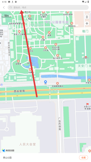 3、在地圖頁面頂部的搜索欄中,可以輸入要添加的地點位置名稱信息,快速定位目標位置添加到收藏中。