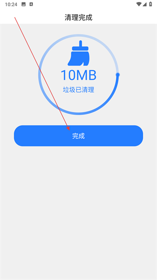 3、垃圾清理完成后,頁面會(huì)顯示清理完成提示以及已清理的垃圾容量,點(diǎn)擊完成按鈕。