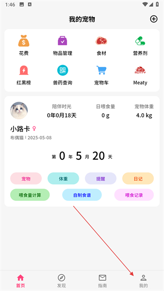 1、打開鏟屎官日記應用,點擊右下角我的選項。