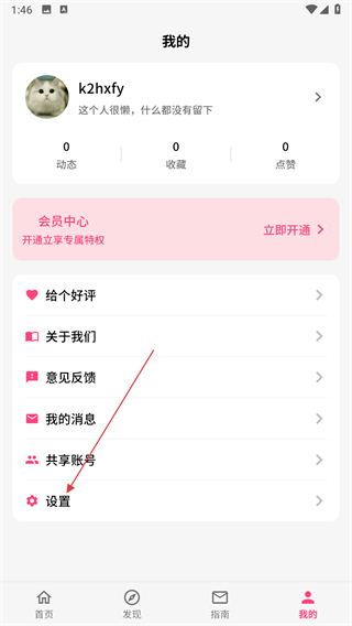 2、在我的頁面,點擊設置選項,進入設置頁面。