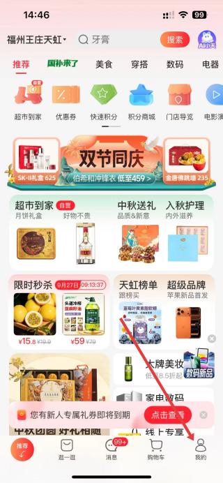 1、打開天虹商場app,點擊底部導航欄中的我的選項。