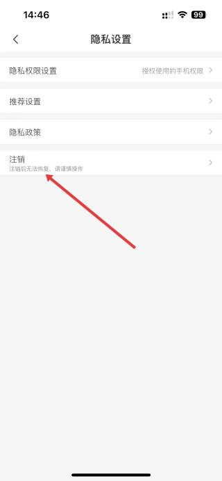 4、進入隱私設置頁面,點擊注銷選項,進入確認注銷操作。