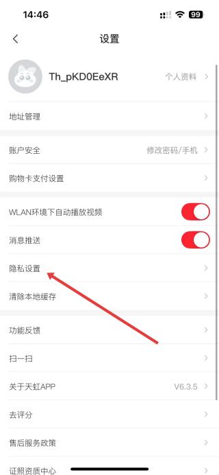 3、在設置頁面里,找到并點擊隱私設置的選項。
