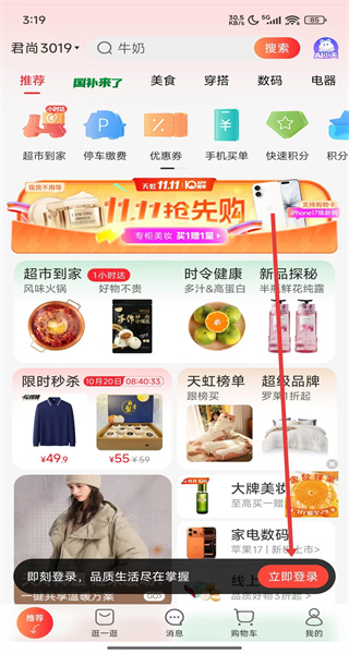 1、打開天虹APP首頁,點擊立即登錄進入登錄環(huán)節(jié)。