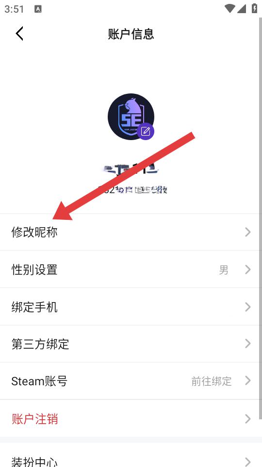 3、在賬戶信息的頁(yè)面,需要點(diǎn)擊修改昵稱,進(jìn)入昵稱修改的界面。