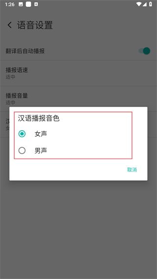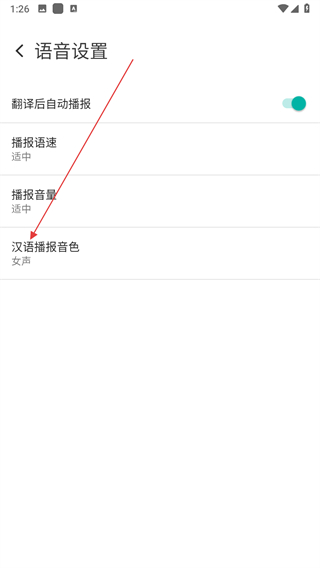 3、在語音設置界面里,找到漢語播報音色選項并點擊。