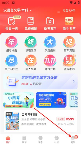 1、打開(kāi)尚德機(jī)構(gòu)APP,點(diǎn)擊底部導(dǎo)航欄我的選項(xiàng)。