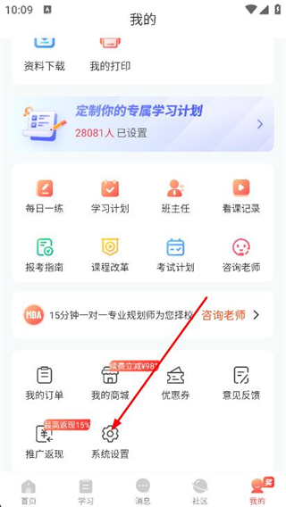 2、在我的頁(yè)面中,找到并點(diǎn)擊下方系統(tǒng)設(shè)置選項(xiàng)。