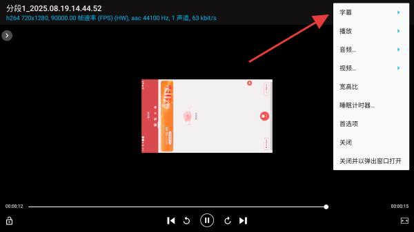 3、在展開的菜單欄中,點(diǎn)擊字幕的按鈕。