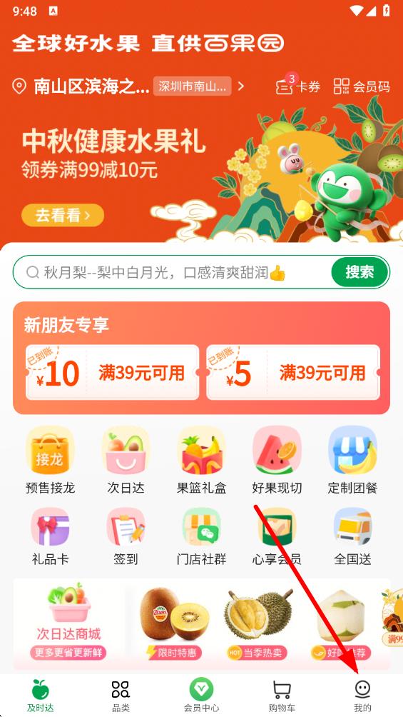 1、打開百果園app,點(diǎn)擊底部導(dǎo)航欄最右側(cè)我的選項(xiàng),進(jìn)入個(gè)人相關(guān)界面。