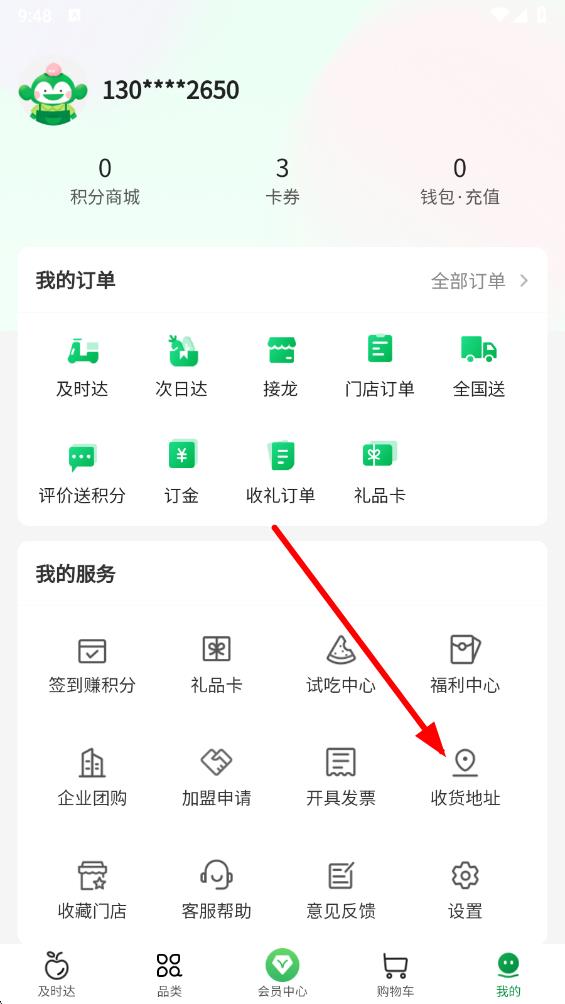 2、在個(gè)人界面中,找到我的服務(wù)板塊,點(diǎn)擊收貨地址選項(xiàng),進(jìn)入收貨地址管理頁面。