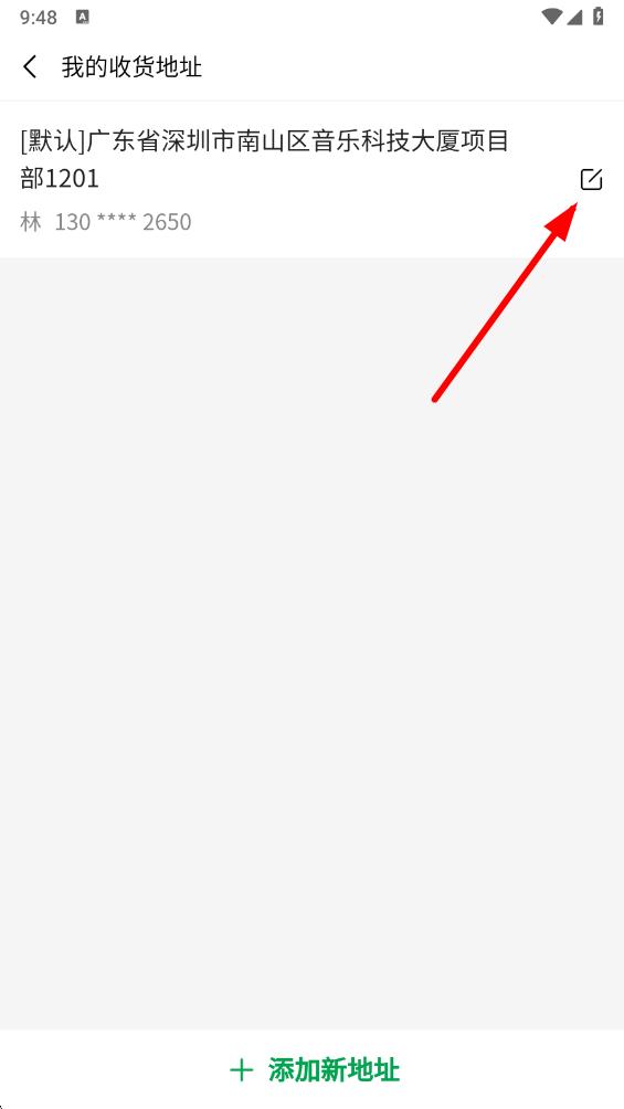 3、在收貨地址管理頁面,點(diǎn)擊要修改地址右側(cè)的編輯圖標(biāo)。