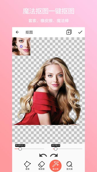 2、魔法摳圖實(shí)現(xiàn)一鍵摳圖,只需在要摳取的地方畫一筆即可自動識別