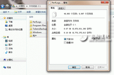 作為系統(tǒng)盤,其重要性不言而喻。只有系統(tǒng)盤有足夠的空間,以保證系統(tǒng)的穩(wěn)定運(yùn)行,才能充分發(fā)揮電腦的總體性能。默認(rèn)情況下,Win 7的系統(tǒng)文件占用的空間約為8GB(如圖),其中主要包括系統(tǒng)文件、頁面文件(所占空間約為內(nèi)存的1.5倍)和休眠文件(所占空間約等于內(nèi)存)等。再加上緩存文件、臨時文件等需求的空間,微軟保守地推薦安裝Win 7的分區(qū)大小為15GB。不過我們建議大家最好為系統(tǒng)盤劃分50GB的空間。