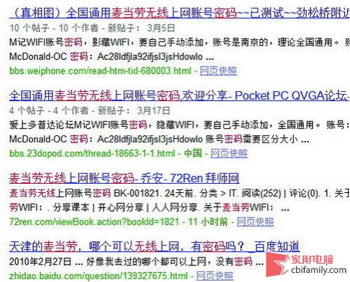 07如果常用的弱口令無效,還可以上網(wǎng)根據(jù)SSID和城市、地區(qū)在Google或者百度中搜索無線密碼,很可能獲得驚喜哦。