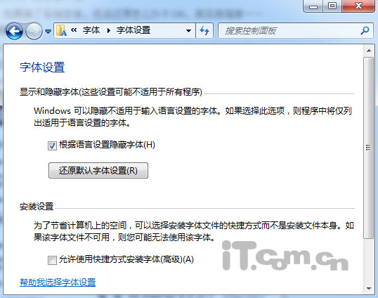 中文版:控制面板\外觀和主題\字體\字體設(shè)置
