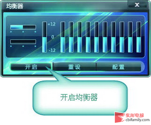 默認(rèn)狀態(tài)下,均衡器可能是關(guān)閉的。這時音樂以默認(rèn)的狀態(tài)進行播放,聲音沒有經(jīng)過渲染,各個頻段的音效聽上去比較平淡。開啟EQ的方法很簡單,點擊均衡器界面上的“開啟”按鈕即可。