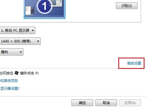 在桌面任意空白處 右鍵單擊 選擇屏幕分辨率 再點擊高級(如下圖):