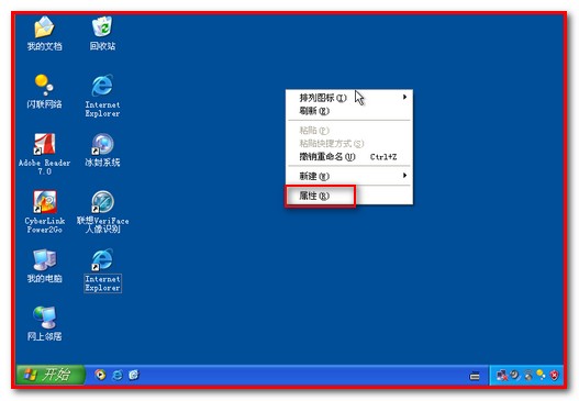 1.桌面空白地方點擊右鍵,選擇“屬性”