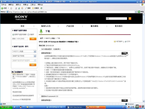 下載SATA驅(qū)動,首先進入SONY官方網(wǎng)站,然后選擇產(chǎn)品支持-VAIO個人電腦