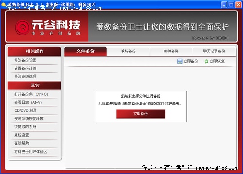 這就是巴士280自帶的愛數(shù)備份軟件,其實是收費軟件,贈送90天的試用權,非常實用,可以進行文件備份、系統(tǒng)備份、郵件備份和聊天記錄備份等??次业膫浞菽夸洠椭肋@東西很靠譜了: