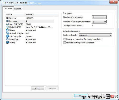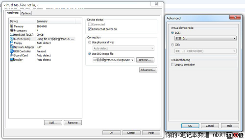 在VM里硬件設置里顯示:Mac OS X Server 10.6。因為我想試蘋果64位系統(tǒng),所以是照下面修改。