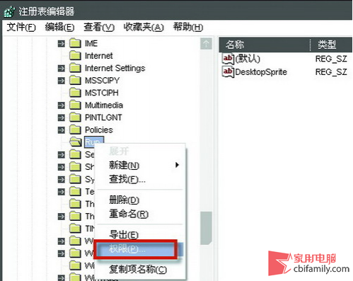 step3.在“Run”項(xiàng)上單擊右鍵,選擇“權(quán)限”,彈出“權(quán)限”設(shè)置窗口。