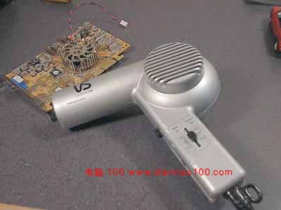 我們要用到的第一樣工具是非常普遍的電吹風(fēng)。把電吹風(fēng)設(shè)置為熱,然后對著粘住 GPU 的散熱片加熱。我們要把它加熱到一定的程度,注意也不能太熱,在感到燙手的時候就適可而止。