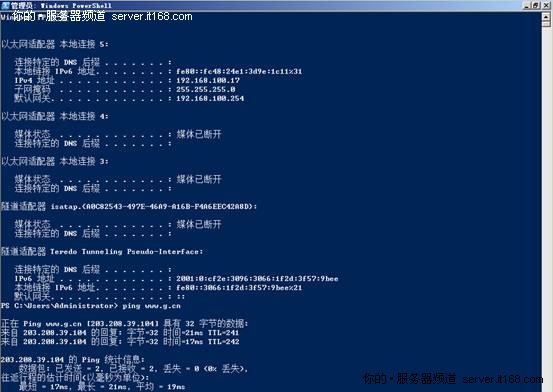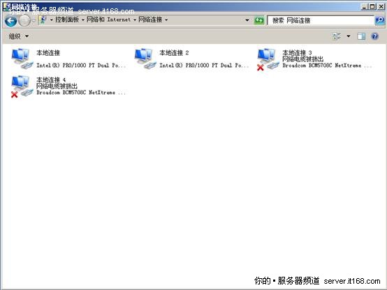 將網(wǎng)卡安裝好后,啟動操作系統(tǒng),Windows Server 2008 R2此時已經(jīng)識別出了兩塊網(wǎng)卡,并且已經(jīng)通過DHCP自動獲取到了IP地址(圖3)