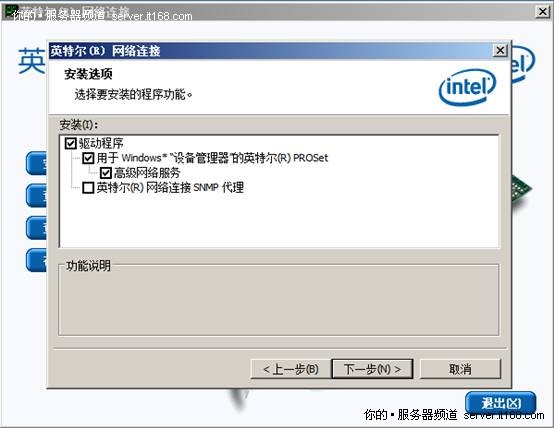 在官網(wǎng)中找到Intel Ethernet Drivers and Software for Multiple Operating Systems 從描述中知道該程序支持多種OS及數(shù)種Intel網(wǎng)卡。下載到本地后,運(yùn)行Autorun,選擇【安裝驅(qū)動程序和軟件】(圖5)