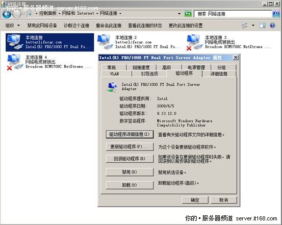 但是此時點(diǎn)擊網(wǎng)卡的屬性發(fā)現(xiàn),驅(qū)動程序雖然是09年3月份的,但是相關(guān)的高級屬性配置選項(xiàng)卻沒有,看來還是要去Intel官方下載相關(guān)驅(qū)動管理程序才可以呀。(圖4)