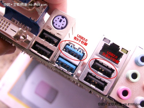 ◎ 最專業(yè)的方法:看接口針腳!9片為USB3.0接口!