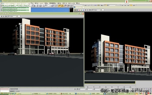 完成前期制作后,就到最終渲染這步了。我必須著重指出的是:最終渲染的速度與顯卡無(wú)關(guān),只和CPU的處理能力有關(guān),其次和內(nèi)存有關(guān)。在整個(gè)渲染過(guò)程中,顯卡唯一做的工作就是每當(dāng)CPU渲染完畫(huà)面中其中一個(gè)部分后,就把這部分在屏幕上顯示出來(lái)。所以,對(duì)于最終渲染來(lái)說(shuō),專業(yè)顯卡和游戲顯卡毫無(wú)區(qū)別(如果真要較真說(shuō)有區(qū)別,那也僅僅是顯示的畫(huà)面、色彩更好一些)。但是,由于制作者的能力和經(jīng)驗(yàn)的限制,無(wú)法準(zhǔn)確的預(yù)測(cè)出最終渲染的結(jié)果,而最終渲染又非常耗時(shí)(96年剛開(kāi)始接觸3D設(shè)計(jì)時(shí),電腦CPU還是奔騰級(jí)別,那時(shí)經(jīng)常頭天晚上開(kāi)始渲染,然后人去睡覺(jué),第二天早上起來(lái)看渲染結(jié)果,現(xiàn)在電腦性能不斷提升,一般的建筑效果圖的最終渲染已經(jīng)能控制在1~2小時(shí)左右了),為了節(jié)省時(shí)間,都是采取先降低分辨率,渲染一個(gè)低像素的小樣,大致瀏覽效果,然后調(diào)整,再渲染小樣,再調(diào)整,多次重復(fù)后,才最終出圖的(這里就是老手和新手最顯著的區(qū)別了,老手能大大減少重復(fù)次數(shù),而新手可能反復(fù)調(diào)整數(shù)天都無(wú)法得到理想效果)。由于渲染耗費(fèi)時(shí)間,在這階段,制作者經(jīng)常處于等待小樣的渲染。那么,有什么辦法能提高效率么?請(qǐng)看第一張圖,3Ds MAX采取的是在圖中所示的四視口視圖模式下,可以調(diào)整視圖顯示,通過(guò)激活圖中鼠標(biāo)所指的ActiveShade,在這種狀態(tài)下,所做的任何調(diào)整,都能實(shí)時(shí)的在右下這個(gè)視圖中,實(shí)時(shí)的顯示出效果,而這個(gè)效果是通過(guò)顯卡來(lái)渲染的。(當(dāng)然,也可以渲染中選擇ActiveShade輸出來(lái)使用顯卡來(lái)快速渲染)