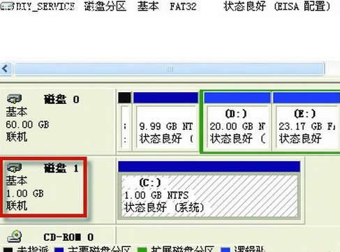 這樣一來(lái),在出現(xiàn)的系統(tǒng)啟動(dòng)菜單中選擇“grub4do菜單”,就可以看到與對(duì)應(yīng)的子菜單了,選擇其中的“啟動(dòng)內(nèi)存版XP”就可以順利登錄內(nèi)存版的XP了。在內(nèi)存版的XP中,打開(kāi)“計(jì)算機(jī)管理”的磁盤(pán)管理組件,可以看到系統(tǒng)新增了一個(gè)1GB大小的磁盤(pán),這就是內(nèi)存虛擬磁盤(pán)?!?/p>