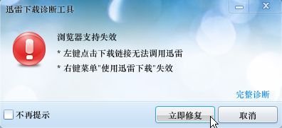 如圖1所示,當(dāng)迅雷7啟動時,如果發(fā)現(xiàn)有問題,則會提示我們進(jìn)行修復(fù)。我們可以直接單擊“立即修復(fù)”按鈕即可修復(fù)。