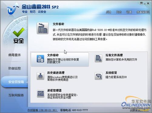 通過金山毒霸2011安全百寶箱調(diào)取文件粉碎功能