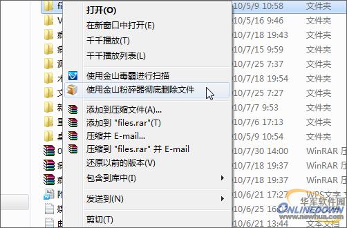 選取對應(yīng)目錄通過金山毒霸2011執(zhí)行文件粉碎操作
