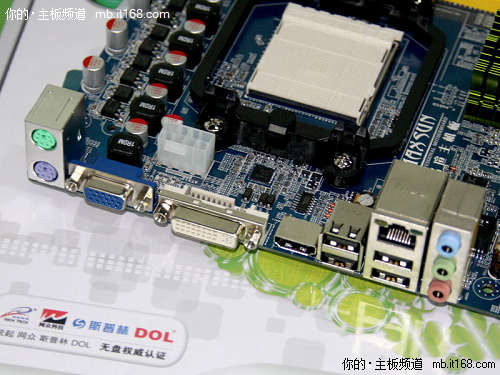 背板部分提供了PS/2鍵鼠接口,6個USB2.0接口,1個COM口,網(wǎng)絡(luò)和音頻輸出接口。