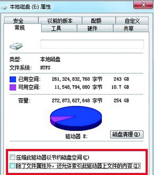 鼠標右鍵單擊硬盤盤符,在菜單上選擇“屬性”,在彈出的界面上,將“壓縮此驅動器以節(jié)約磁盤空間”和“除了文件屬性外,還允許索引此驅動器上文件的內容”這兩項前面的小鉤去掉。之后點擊確定退出。不過這樣的操作建議僅針對非系統盤,比如我們用來存儲電影或音樂的D,E,F盤等,系統盤還是保留原樣比較好。