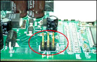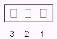 另一種是三根針,這種三針的跳線可以有三種狀態(tài):1和2之間短接、2和3之間短接(如圖4)和全部開路(如圖5)。