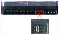 一般來說,硬盤出廠時默認的設置是作為主盤,當只安裝一個硬盤時是不需要改動的;但當安裝多個硬盤時,就需要對硬盤跳線重新設置了。硬盤上的跳線比較簡單,其跳線位置多在硬盤后面數(shù)據(jù)線接口和電源線接口之間(如圖7)。