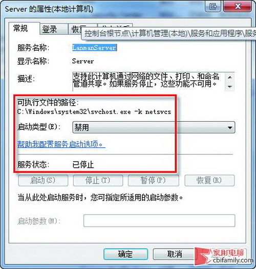 如果不需要進行局域網(wǎng)共享,那么建議進入Windows的服務管理中,找到“Server”服務,把它設置為“禁用”,并重啟Windows。禁止“Server”服務是個好習慣,禁用這個服務能減少一些安全隱患。