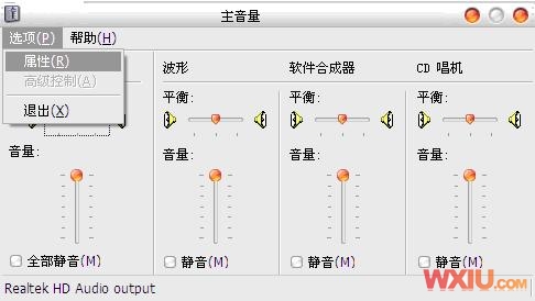 2. 打開(kāi)主音量窗口,選擇 選項(xiàng)>屬性 菜單