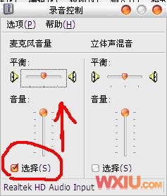 4. 打開(kāi) 錄音控制 選項(xiàng),將 麥克風(fēng)音量 下面的 選擇 項(xiàng)目,勾選。將音量調(diào)節(jié)到最高