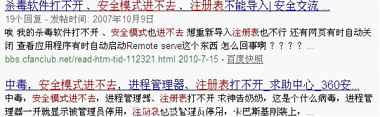 因?yàn)榘踩J揭彩菤⒍緯r(shí)常用的一種方法,當(dāng)普通模式清除病毒失敗時(shí),往往需要進(jìn)入安全模式殺毒,但是發(fā)現(xiàn),在上圖上,一選擇啟動(dòng)到安全模式,一會(huì)兒功夫系統(tǒng)會(huì)自動(dòng)重新啟動(dòng),或者啟動(dòng)時(shí)藍(lán)屏死機(jī)。