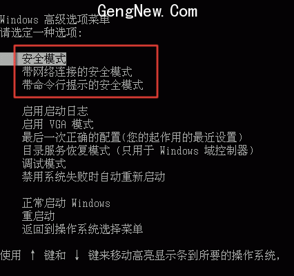 然后,當(dāng)用戶重新啟動(dòng)電腦,按F8,在啟動(dòng)菜單選擇安全模式時(shí),就會(huì)發(fā)現(xiàn)安全模式進(jìn)不去,安全模式藍(lán)屏的問題已經(jīng)得到解決。